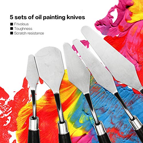 healthwen 5 STKS Schilderen Mes Set Paletmes Rvs Spatel Kit voor Kunstenaar Canvas Olieverf Kleur Mengen Schilderen Tool…