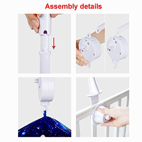 【Eenvoudig te installeren】 Splits elk stuk [zeer eenvoudig te bedienen], je krijgt een gloednieuwe stabiele babywiegmobiel met houderarmbeugel en opwindbare speeldoos.