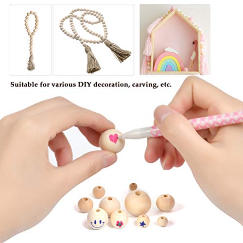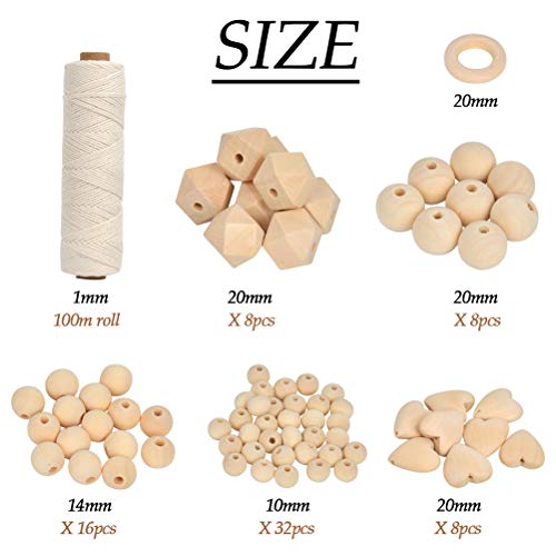 【Set houten kralen】32 x 10 mm ronde parels, 16 x 14 mm ronde kralen, 8 x 20 mm ronde parels, 8 x 20 mm hartvormige parels, 8 x 20 mm geometrische parels, 2 cm kleine houten ring (pareldiameter bedraagt 2-3 mm).
