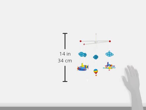Op luchtige hoogtes zweven de vliegtuigen en de heteluchtballon door de kinderkamer. Niet alleen voor kleine vliegtuigen, een leuke blikvanger. Afmetingen: ca. 42 x 42 x 34 cm (art. 7938)