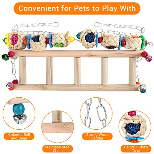 Met kleurrijke houten kralen is de kleur helder en helder, wat de interesse van huisdieren kan trekken. De kip kan erop springen en het platte ladderoppervlak zorgt ervoor dat je kip er op uitgebalanceerd is.
