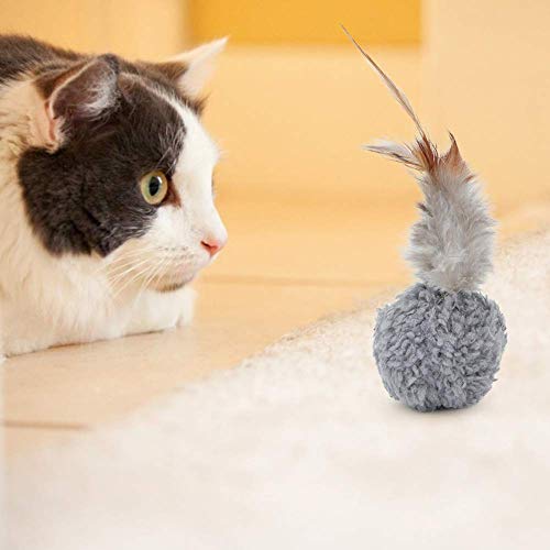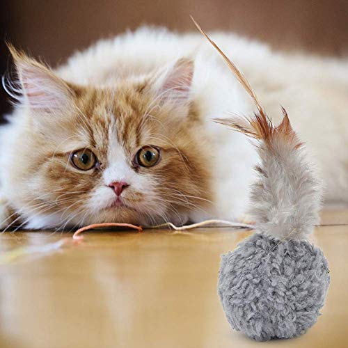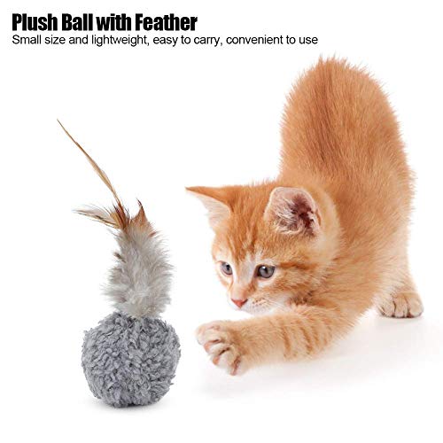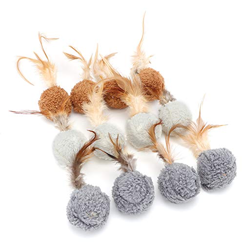 Kattenspeelgoed, 12 stuks wit/grijs/bruin katten pluche bal lichtgewicht met veer voor huisdier voor thuis