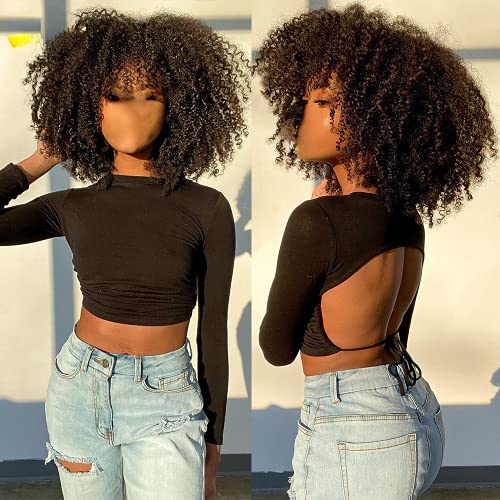 Specification: Korte afro kinky krullend pruiken met pony voor zwarte vrouwen gemengde synthetische cosplay Afrikaanse pruiken…