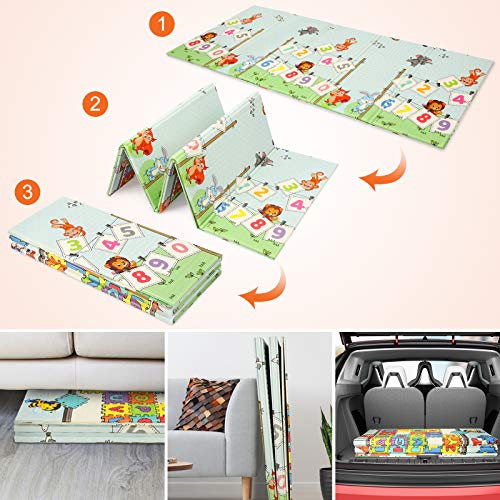 Gemakkelijk te reinigen en op te bergen: deze opvouwbare babyspeelmat kan heel eenvoudig vijf keer oprollen, geen ruimte in beslag nemen. Hij is waterdicht en onderhoudsarm, omdat je hem eenvoudig met water kunt afvegen.